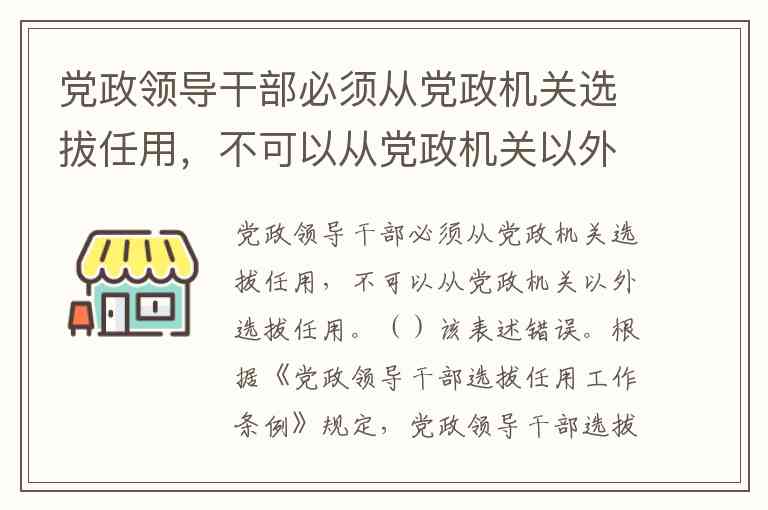 党政领导干部必须从党政机关选拔任用,不可以从党政机关以外选拔任用。()
