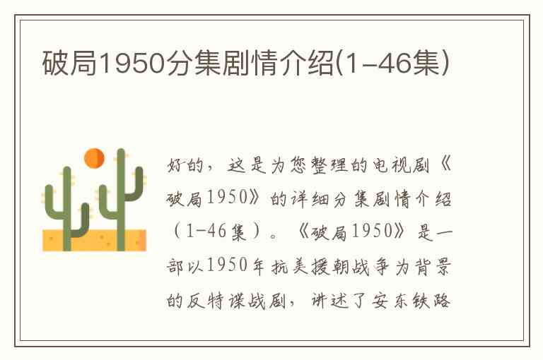 好的,这是为您整理的电视剧《破局1950》的详细分集剧情介绍(1-46集)。