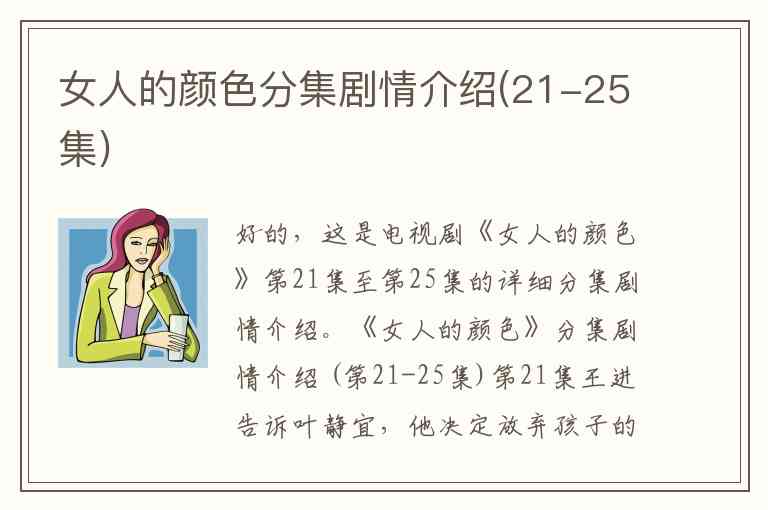 好的,这是电视剧《女人的颜色》第21集至第25集的详细分集剧情介绍。