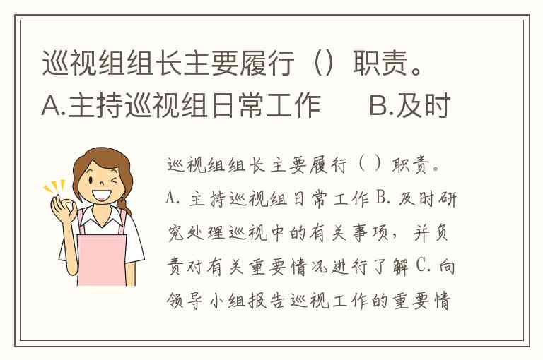 主持日常工作与决策(对应A、B项):组长需“主持巡视组日常工作”,并“及时研究决策巡视中的有关重要事项,负责组织对有关重要情况进行了解”,这构成巡视工作有序推进的基础。