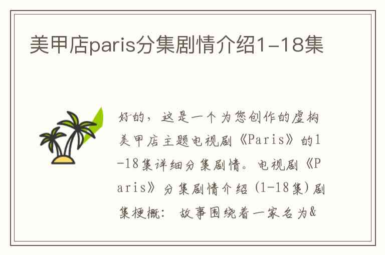 好的,这是一个为您创作的虚构美甲店主题电视剧《Paris》的1-18集详细分集剧情。