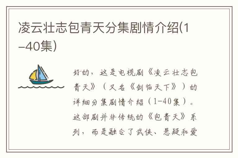 好的,这是电视剧《凌云壮志包青天》(又名《剑临天下》)的详细分集剧情介绍(1-40集)。