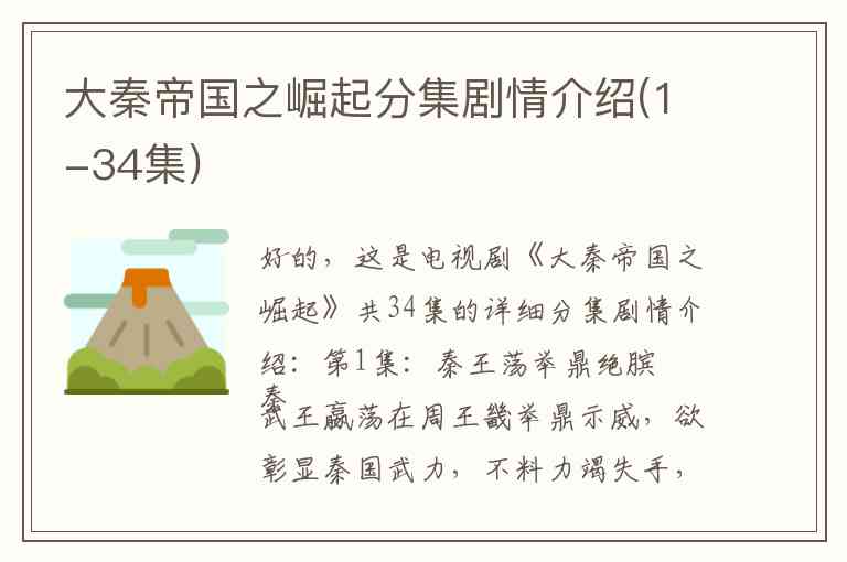 好的,这是电视剧《大秦帝国之崛起》共34集的详细分集剧情介绍: