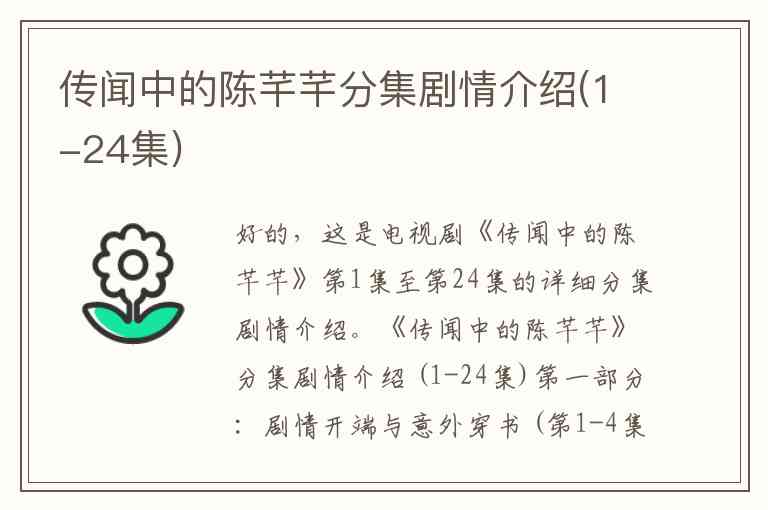 好的,这是电视剧《传闻中的陈芊芊》第1集至第24集的详细分集剧情介绍。