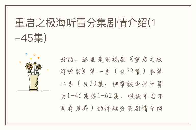 好的,这里是电视剧《重启之极海听雷》第一季(共32集)和第二季(共30集,但常被合并计算为1-45集或1-62集,根据平台不同有差异)的详细分集剧情介绍。