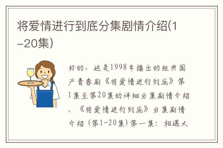 好的,这是1998年播出的经典国产青春剧《将爱情进行到底》第1集至第20集的详细分集剧情介绍。