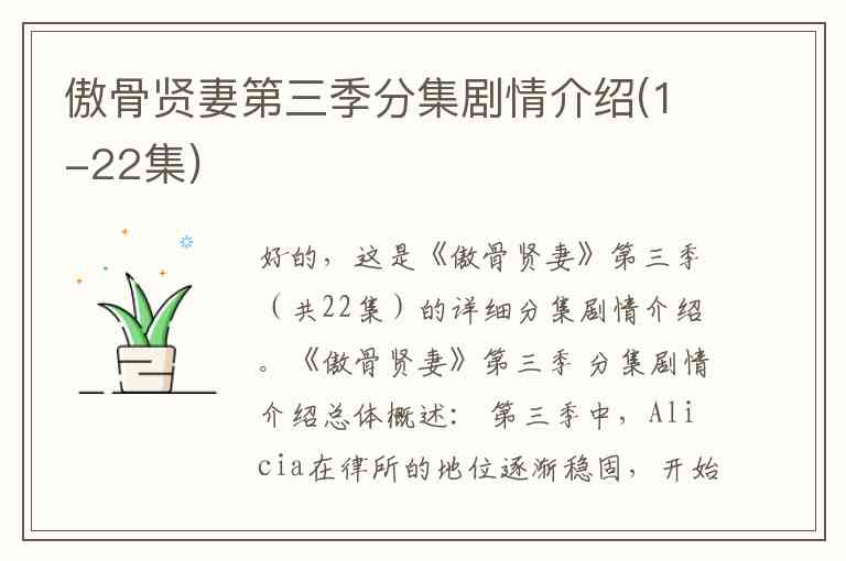 好的,这是《傲骨贤妻》第三季(共22集)的详细分集剧情介绍。