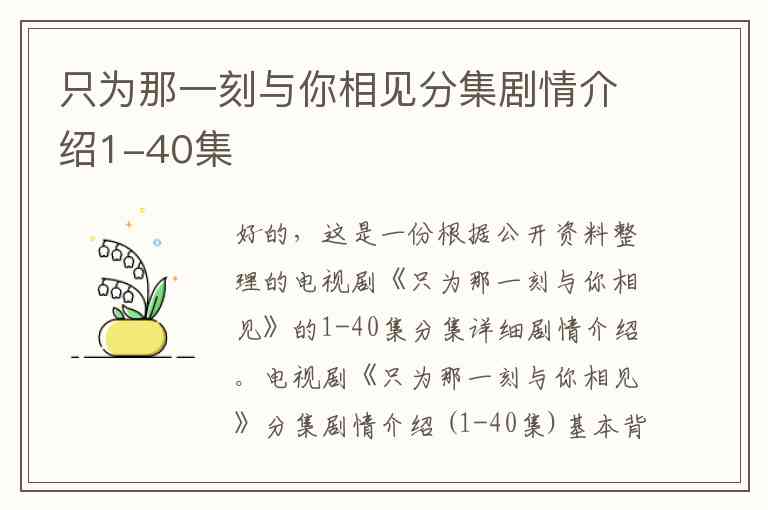 好的,这是一份根据公开资料整理的电视剧《只为那一刻与你相见》的1-40集分集详细剧情介绍。