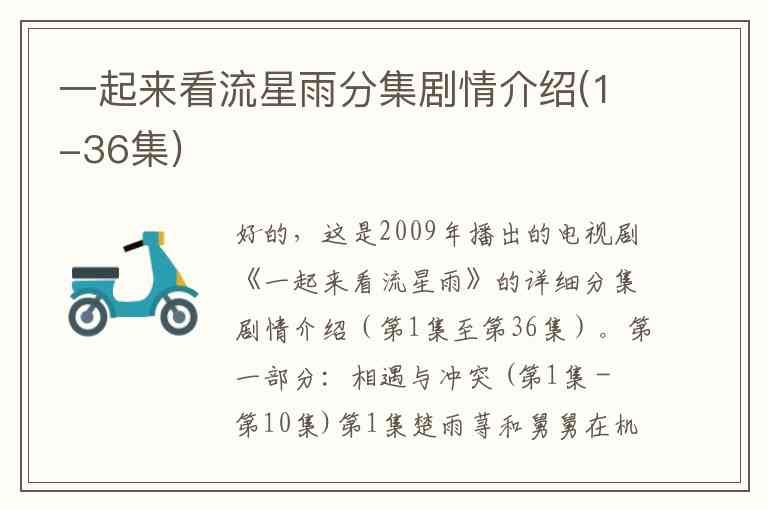 好的,这是2009年播出的电视剧《一起来看流星雨》的详细分集剧情介绍(第1集至第36集)。