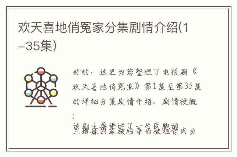好的,这里为您整理了电视剧《欢天喜地俏冤家》第1集至第35集的详细分集剧情介绍。
