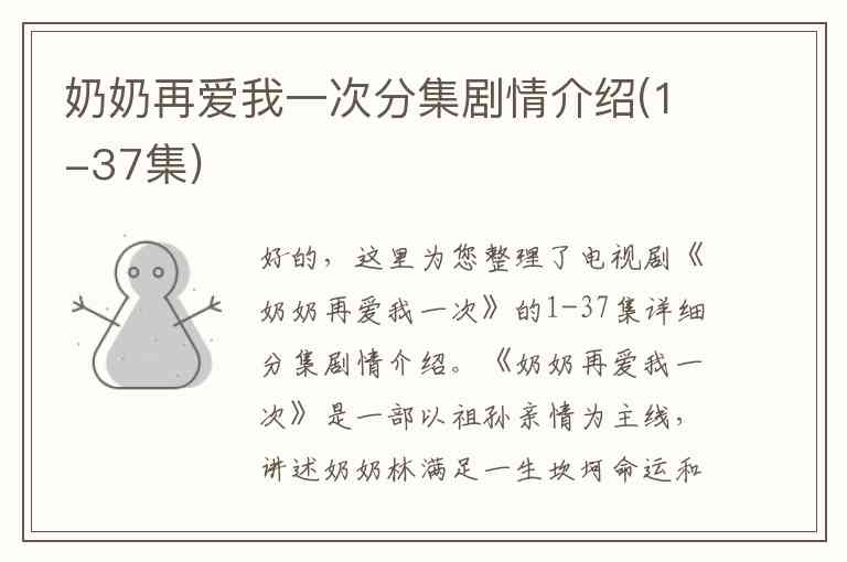 好的,这里为您整理了电视剧《奶奶再爱我一次》的1-37集详细分集剧情介绍。