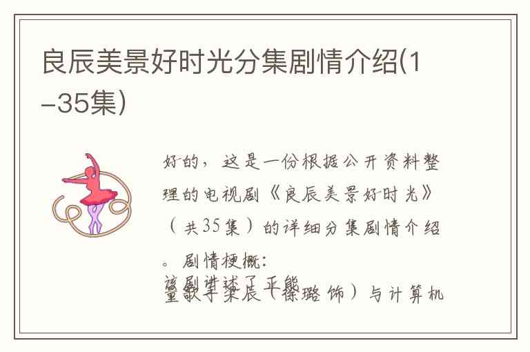 好的,这是一份根据公开资料整理的电视剧《良辰美景好时光》(共35集)的详细分集剧情介绍。