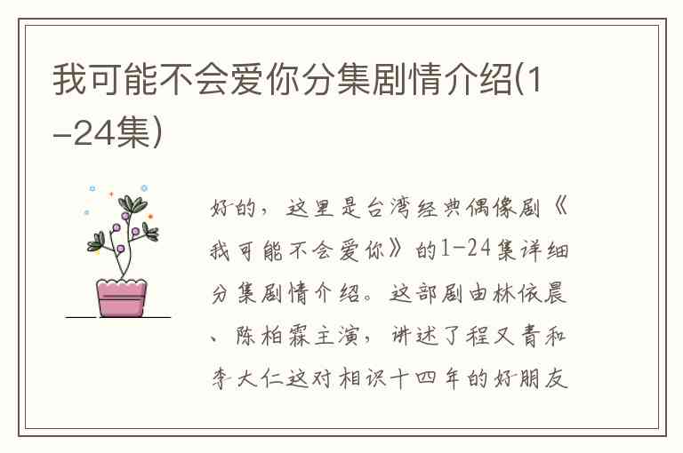 好的,这里是台湾经典偶像剧《我可能不会爱你》的1-24集详细分集剧情介绍。