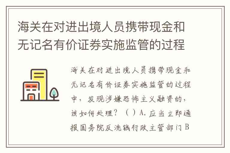 海关在对进出境人员携带现金和无记名有价证券实施监管的过程中,发现涉嫌恐怖主义融资的,该如何处理?()A.应当立即通报国务院反洗钱行政主管部门 B.应当立即通报有管辖权的公安机关 C.应当立即通报中国人民武装警察部队 D.应当立即通报民兵组织