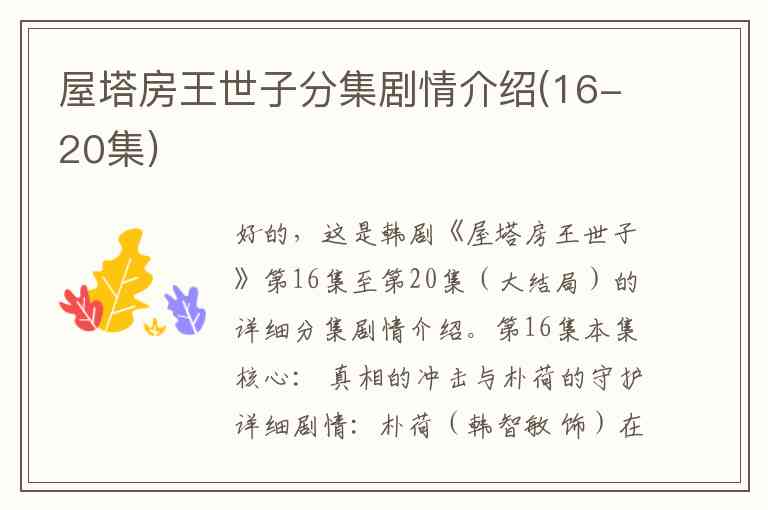好的,这是韩剧《屋塔房王世子》第16集至第20集(大结局)的详细分集剧情介绍。