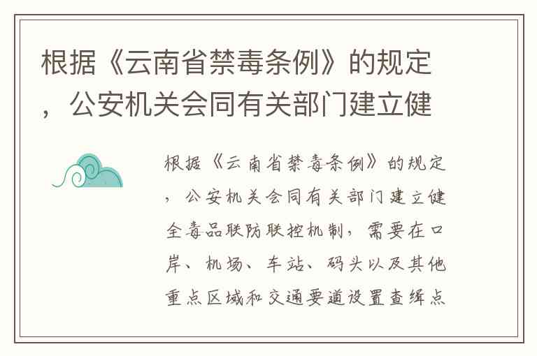 根据《云南省禁毒条例》规定,公安机关在口岸、机场、车站等重点区域设置毒品查缉点时,应当设置警示牌。这一要求在条例修订稿第二十七条中明确规定,旨在通过显著标识提醒往来人员配合检查,并知晓相关法律责任。此前版本的条例也强调在机场、车站等场所设置公示牌的必要性,例如要求在公安检查站显著位置公示"为他人携带、运输毒品应当承担法律责任"等内容,二者共同构成了查缉点标识规范的完整体系。