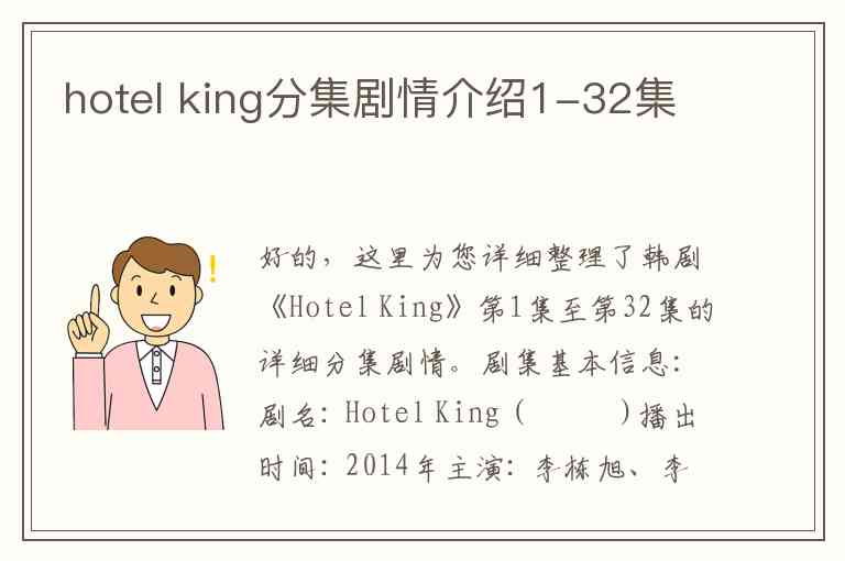 好的,这里为您详细整理了韩剧《Hotel King》第1集至第32集的详细分集剧情。