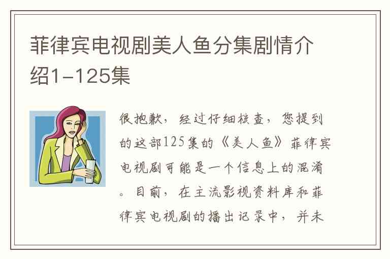 很抱歉,经过仔细核查,您提到的这部125集的《美人鱼》菲律宾电视剧可能是一个信息上的混淆。