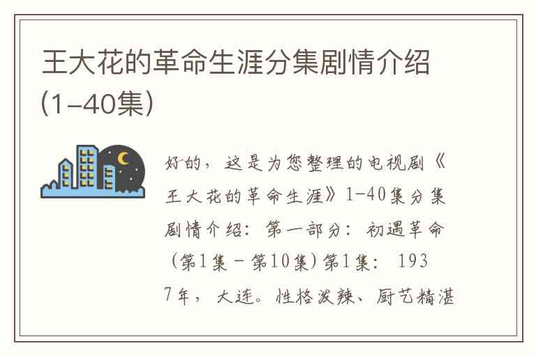好的,这是为您整理的电视剧《王大花的革命生涯》1-40集分集剧情介绍: