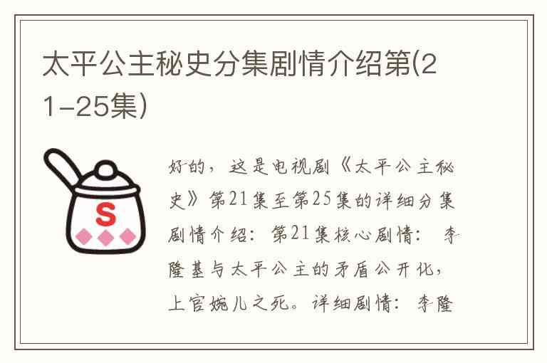 好的,这是电视剧《太平公主秘史》第21集至第25集的详细分集剧情介绍: