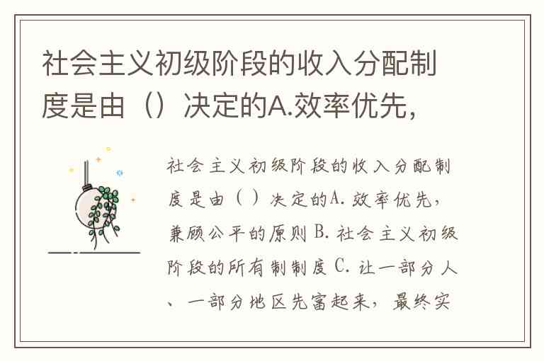 社会主义初级阶段的收入分配制度是由()决定的A.效率优先,兼顾公平的原则 B.社会主义初级阶段的所有制制度 C.让一部分人、一部分地区先富起来,最终实现共同富裕的要求 D.社会主义市场经济体制