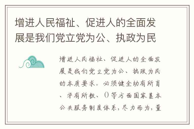 党的二十大报告明确指出,增进人民福祉、促进人的全面发展是我们党立党为公、执政为民的本质要求。构建覆盖全生命周期的国家基本公共服务制度体系,需要系统性回应人民在不同生命阶段的核心需求。这道多项选择题考察的正是中国特色民生保障体系的核心构成要素。