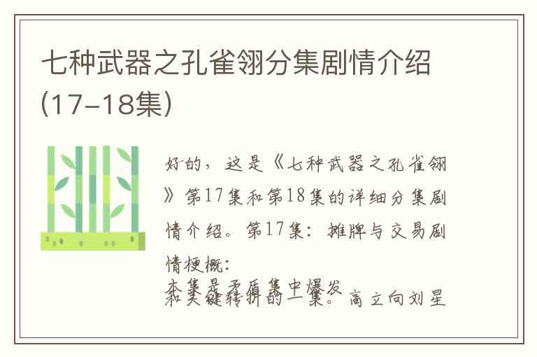 好的,这是《七种武器之孔雀翎》第17集和第18集的详细分集剧情介绍。