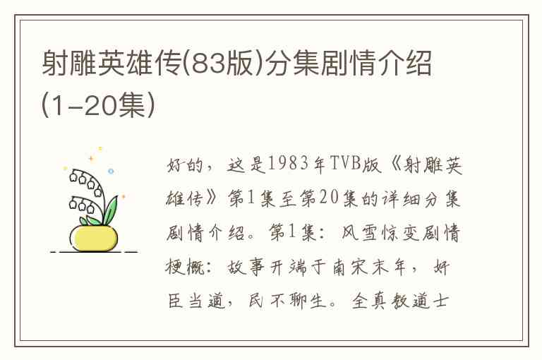 好的,这是1983年TVB版《射雕英雄传》第1集至第20集的详细分集剧情介绍。
