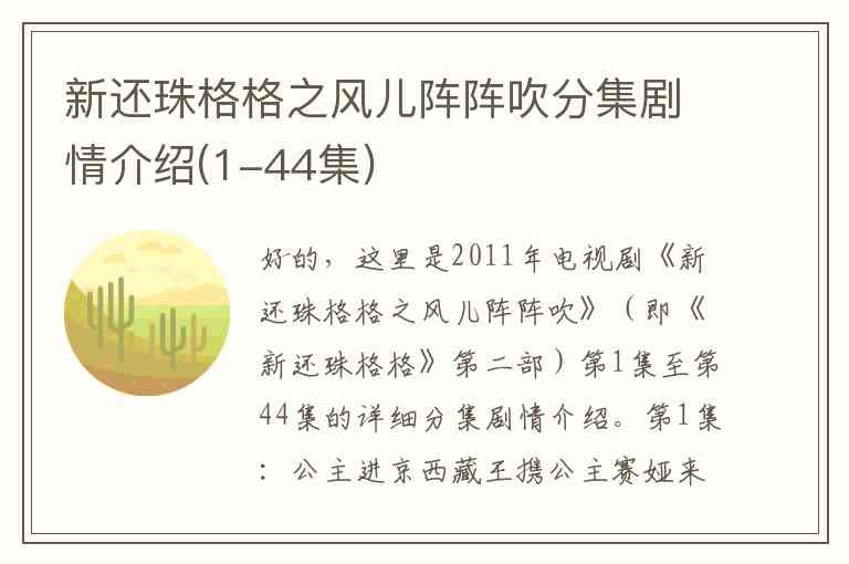 好的,这里是2011年电视剧《新还珠格格之风儿阵阵吹》(即《新还珠格格》第二部)第1集至第44集的详细分集剧情介绍。