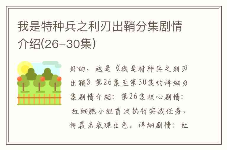 好的,这是《我是特种兵之利刃出鞘》第26集至第30集的详细分集剧情介绍: