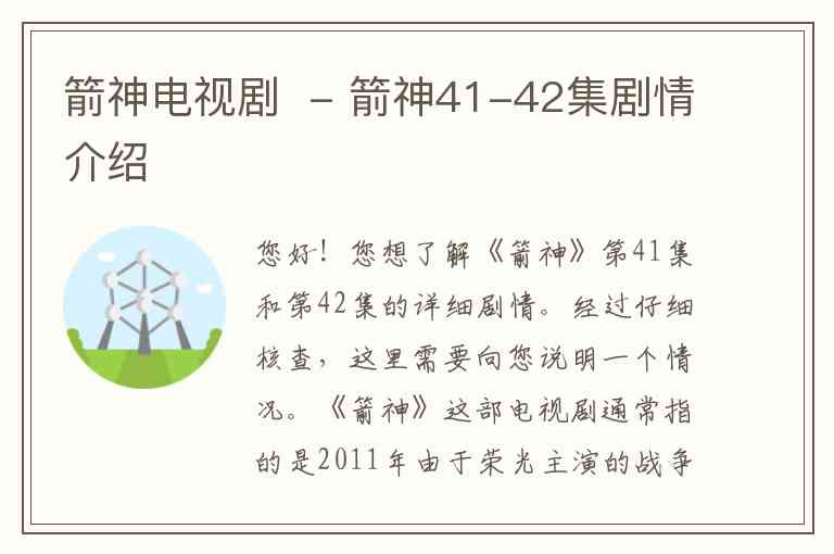 您好!您想了解《箭神》第41集和第42集的详细剧情。经过仔细核查,这里需要向您说明一个情况。