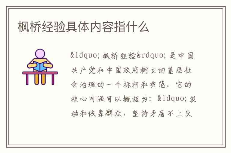 “枫桥经验”起源于1963年浙江省诸暨市枫桥镇的社会主义教育运动。其最初的、最经典的内容包括: