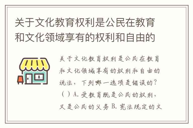 其他选项的正确性可通过宪法条文直接验证:A选项符合第四十六条“权利和义务”的双重表述;B选项对应文化教育权利作为“公民基本权利”的定位;C选项则体现了宪法对科学研究、文艺创作等文化自由的保护,属于文化教育权利的重要组成部分。