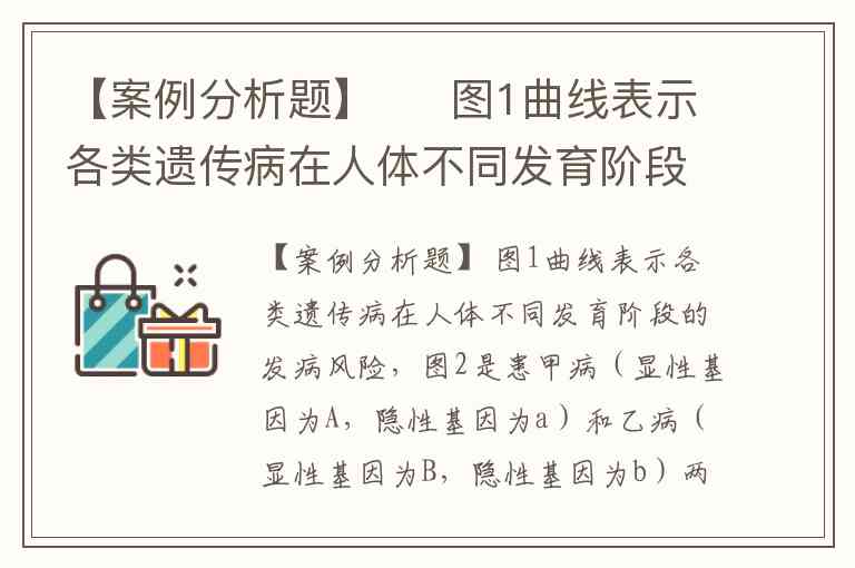 【案例分析题】 图1曲线表示各类遗传病在人体不同发育阶段的发病风险,图2是患甲病(显性基因为A,隐性基因为a)和乙病(显性基因为B,隐性基因为b)两种遗传病的系谱图,其中Ⅱ3不是乙病基因的携带者。 染色体异常遗传病风险在出生后明显低于胎儿期,这是因为()