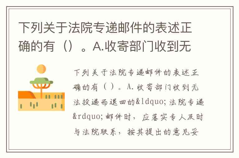 法院专递邮件的处理需严格遵循邮政部门与司法机关的协同规范,以下是对各选项的具体分析: