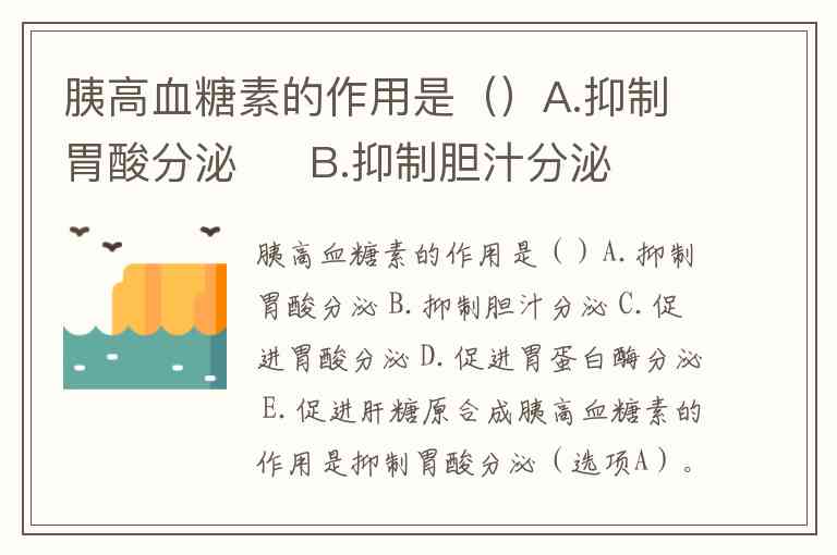 胰高血糖素的作用是()A.抑制胃酸分泌 B.抑制胆汁分泌 C.促进胃酸分泌 D.促进胃蛋白酶分泌 E.促进肝糖原合成