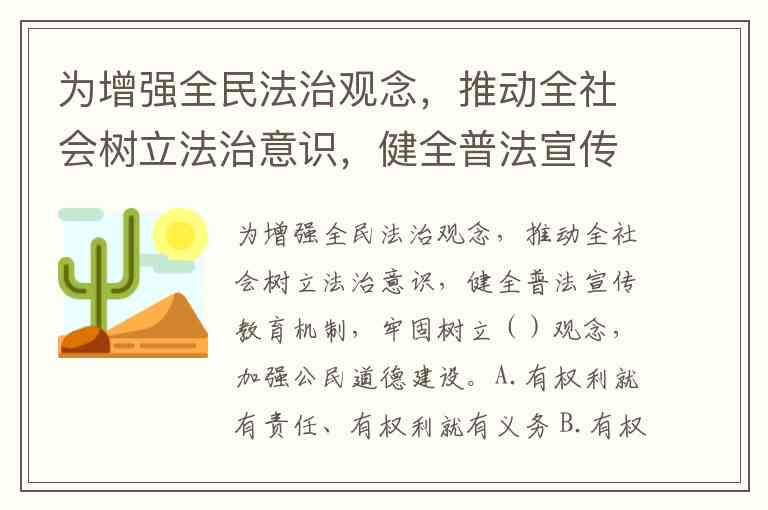 为增强全民法治观念,推动全社会树立法治意识,健全普法宣传教育机制,牢固树立()观念,加强公民道德建设。A.有权利就有责任、有权利就有义务 B.有权力就有责任、有权力就有义务 C.有权利就有责任、有权力就有义务 D.有权力就有责任、有权利就有义务