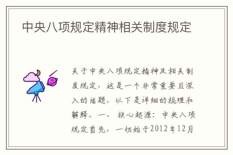 关于中央八项规定精神及相关制度规定,这是一个非常重要且深入的话题。以下是详细的梳理和解释。