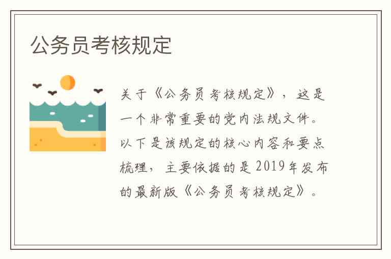 关于《公务员考核规定》,这是一个非常重要的党内法规文件。以下是该规定的核心内容和要点梳理,主要依据的是 2019年发布的最新版《公务员考核规定》。