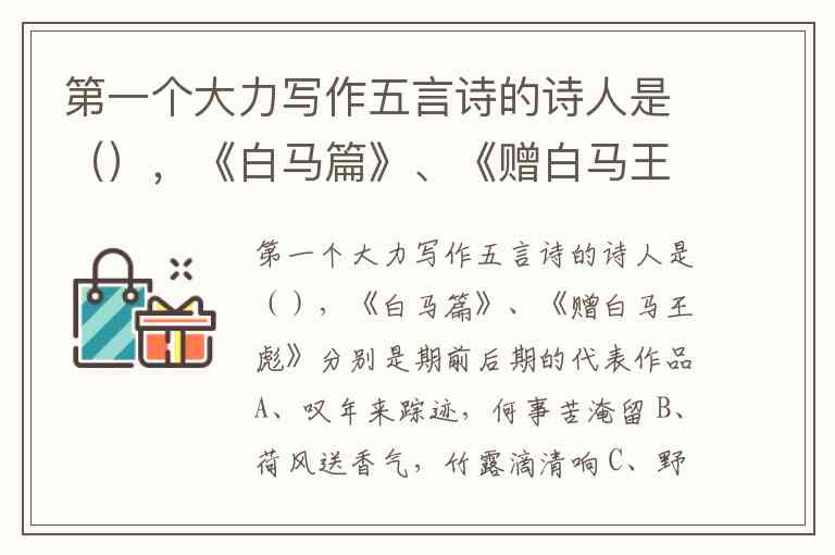 第一个大力写作五言诗的诗人是曹植,《白马篇》、《赠白马王彪》分别是其前后期的代表作品。