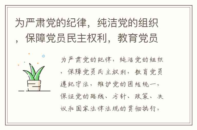 为严肃党的纪律,纯洁党的组织,保障党员民主权利,教育党员遵纪守法,维护党的团结统一,保证党的路线、方针、政策、决议和国家法律法规的贯彻执行,根据(),制定了《中国共产党纪律处分条例》。A.《刑法》 B.《中国共产党章程》 C.中央《八项规定》 D.《中国共产党廉洁自律准则》