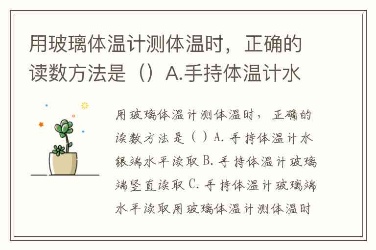 用玻璃体温计测体温时,正确的读数方法是手持体温计玻璃端(远离水银柱的一端),保持水平状态缓慢旋转,待看清水银柱顶端后平视刻度读数,对应选项 C.手持体温计玻璃端水平读取。