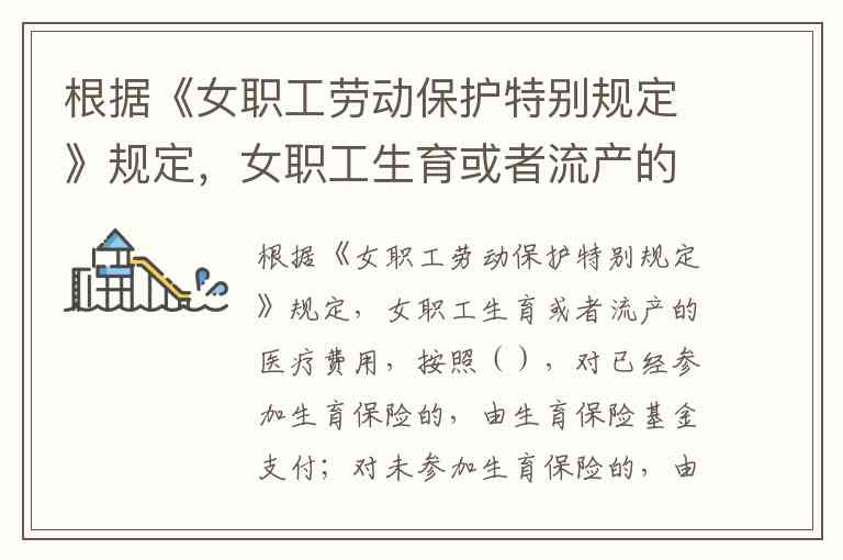 根据《女职工劳动保护特别规定》规定,女职工生育或者流产的医疗费用,按照(),对已经参加生育保险的,由生育保险基金支付;对未参加生育保险的,由用人单位支付。A.生育保险规定的项目和标准 B.医疗机构出具的清单费用 C.医疗机构开具的发票 D.用人单位的生育报销规定