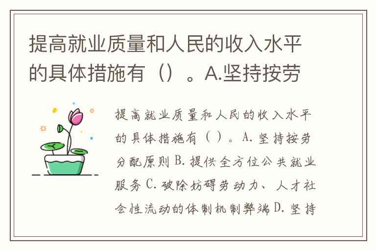 提高就业质量和人民的收入水平的具体措施有()。A.坚持按劳分配原则 B.提供全方位公共就业服务 C.破除妨碍劳动力、人才社会性流动的体制机制弊端 D.坚持就业优先战略和积极就业政策 E.大规模开展职业技能培训