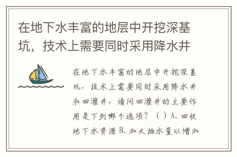在地下水丰富的地层中开挖深基坑,技术上需要同时采用降水井和回灌井,请问回灌井的主要作用是下列哪个选项?()A.回收地下水资源 B.加大抽水量以增加水头降低幅度 C.减少作用在支护结构上的主动土压力 D.保持坑外地下水位处于某一动态平衡状态
