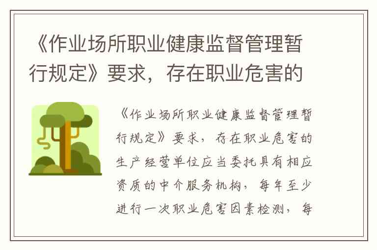 《作业场所职业健康监督管理暂行规定》要求,存在职业危害的生产经营单位应当委托具有相应资质的中介服务机构,每年至少进行一次职业危害因素检测,每()年至少进行一次职业危害现状评价。A.2 B.3 C.1 D.半
