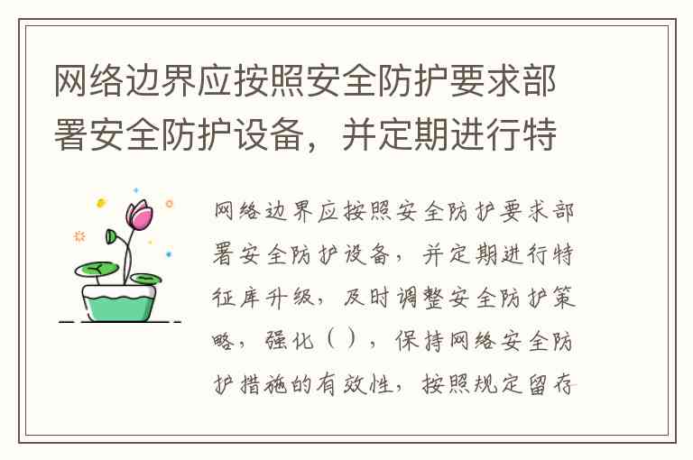 网络边界应按照安全防护要求部署安全防护设备,并定期进行特征库升级,及时调整安全防护策略,强化(),保持网络安全防护措施的有效性,按照规定留存相关的网络安全日志不少于六个月。A.日常巡检 B.运行监测 C.安全审计 D.安全测试
