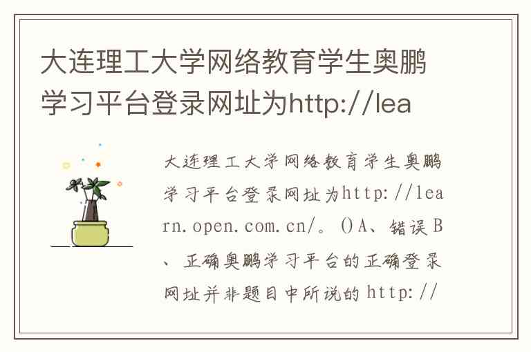 正确的奥鹏学习平台登录网址应为 奥鹏教育 官方公布的域名,建议通过大连理工大学网络教育学院官方渠道或 奥鹏教育 官网获取准确链接,避免因使用错误网址导致无法正常登录或信息安全风险。