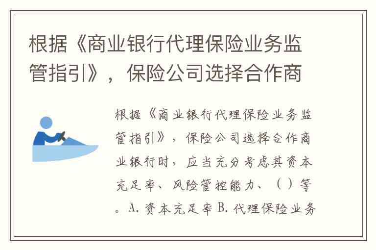 根据《商业银行代理保险业务监管指引》,保险公司选择合作商业银行时,应当充分考虑其资本充足率、风险管控能力、()等。A.资本充足率 B.代理保险业务和财务管理制度健全性 C.近两年受监管部门处罚情况 D.营业场所