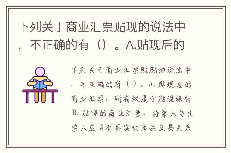商业汇票贴现是企业融资的重要方式,但部分常见认知存在误区。根据《商业汇票承兑、贴现与再贴现管理办法》及实务操作,题目中C、D选项说法不正确,具体分析如下: